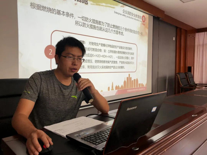 培訓(xùn)活動由公司一級注冊消防工程師李國梁為大家講解,李老師從火災(zāi)的基本常識、常用滅火方法和預(yù)防火災(zāi)的注意事項(xiàng)、易燃易爆危險(xiǎn)物品危險(xiǎn)化學(xué)品消防知識、特種作業(yè)防火防爆知識、火災(zāi)的撲滅、火災(zāi)的應(yīng)急救援知識等六個(gè)方面,結(jié)合公司實(shí)際情況,系統(tǒng)地為大家分解和普及了消防安全知識。