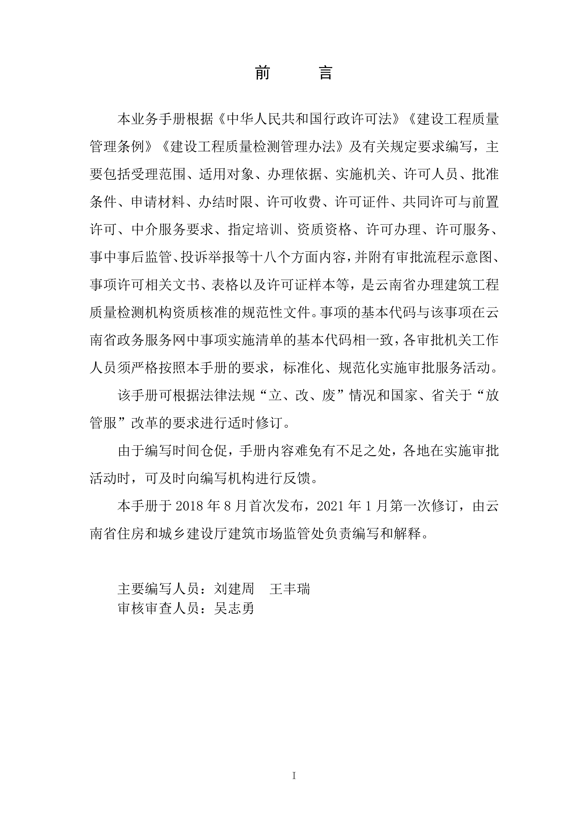 根據(jù)《云南省人民政府關(guān)于調(diào)整482項(xiàng)涉及省級行政權(quán)力事項(xiàng)的決定的通知》(云政發(fā)〔2020〕16 號)、《云南省人民政府關(guān)于調(diào)整112項(xiàng)涉及州級及以下行政權(quán)力事項(xiàng)的決定》(云政發(fā)〔2020〕21號)、《云南省人民政府辦公廳關(guān)于公布云南省省級政務(wù)服務(wù)事項(xiàng)(2020年版) 的通知》(云政辦發(fā)〔2020〕39 號)、《云南省人民政府關(guān)于向中國(云南)自由貿(mào)易試驗(yàn)區(qū)各片區(qū)管委會下放第一批省級管理權(quán)限的決定》(云政發(fā)〔2020〕34號)等文件精神,省住房城鄉(xiāng)建設(shè)廳于2021年1月20日對涉及省級下放自貿(mào)區(qū)各片區(qū)的“建筑施工企業(yè)安全生產(chǎn)許可證核發(fā)”等9項(xiàng)政務(wù)服務(wù)事項(xiàng)辦事指南和業(yè)務(wù)手冊進(jìn)行了編寫或修訂,現(xiàn)將“建設(shè)工程質(zhì)量檢測機(jī)構(gòu)資質(zhì)核準(zhǔn)業(yè)務(wù)手冊和辦事指南(完整版)”發(fā)布如下:
