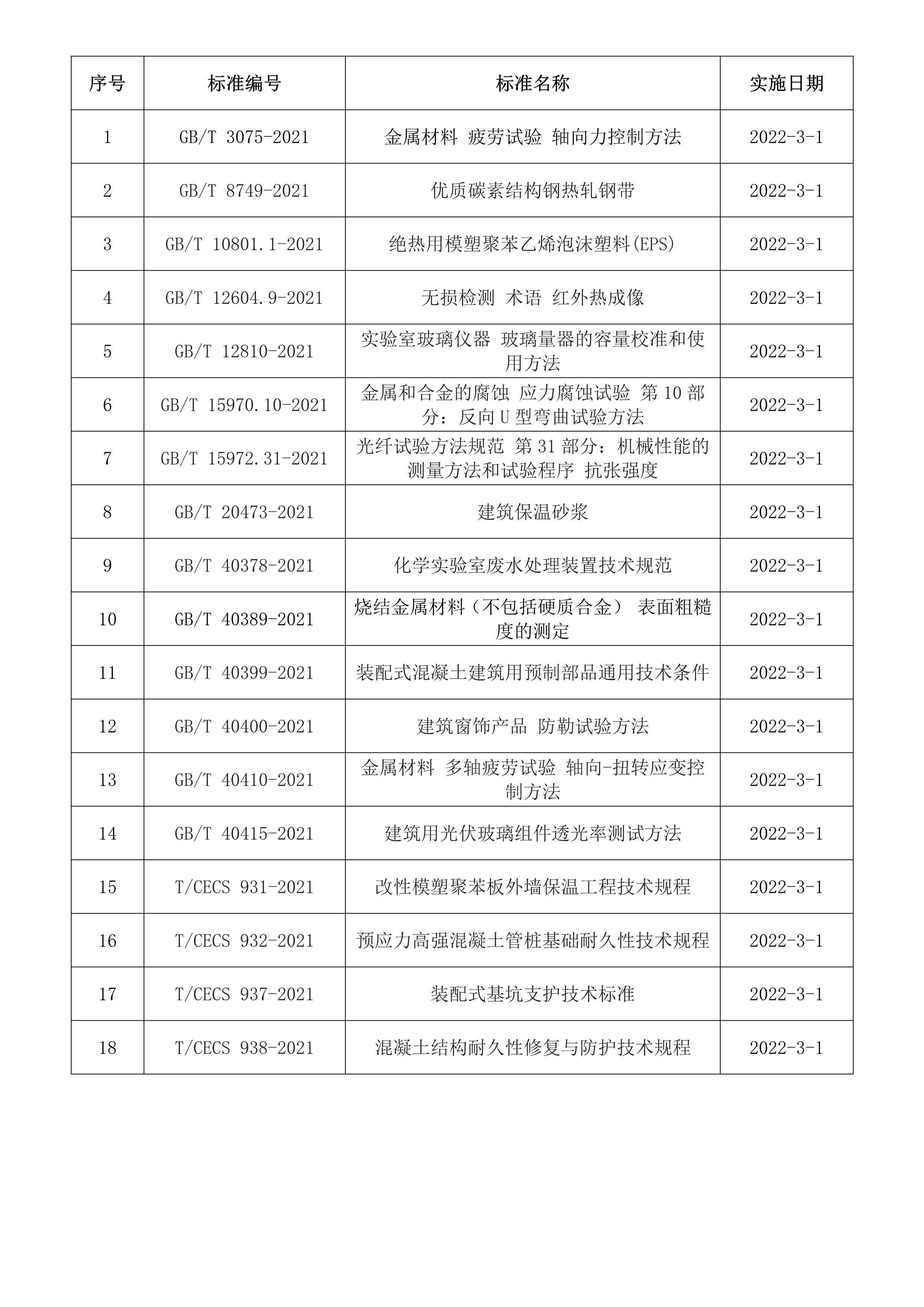 2022年3月開(kāi)始實(shí)施的工程建設(shè)標(biāo)準(zhǔn)