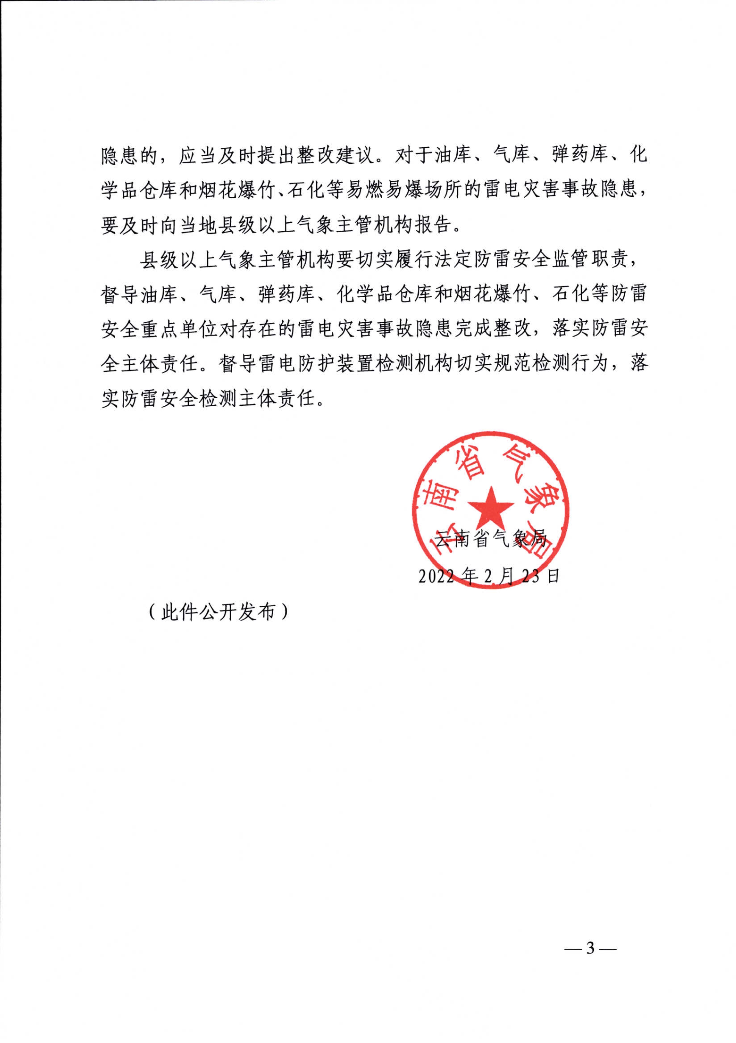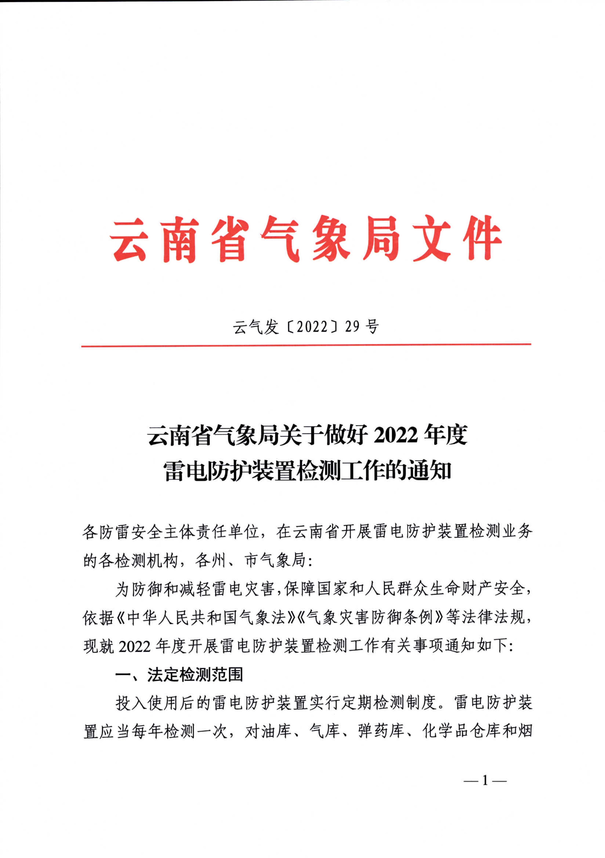 云南省氣象局關(guān)于做好2022年度雷電防護裝置檢測工作的通知