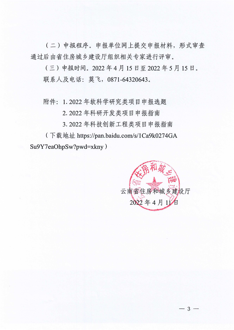 云南省住房和城鄉(xiāng)建設(shè)廳關(guān)于組織申報2022年科學(xué)技術(shù)計劃項目的通知
