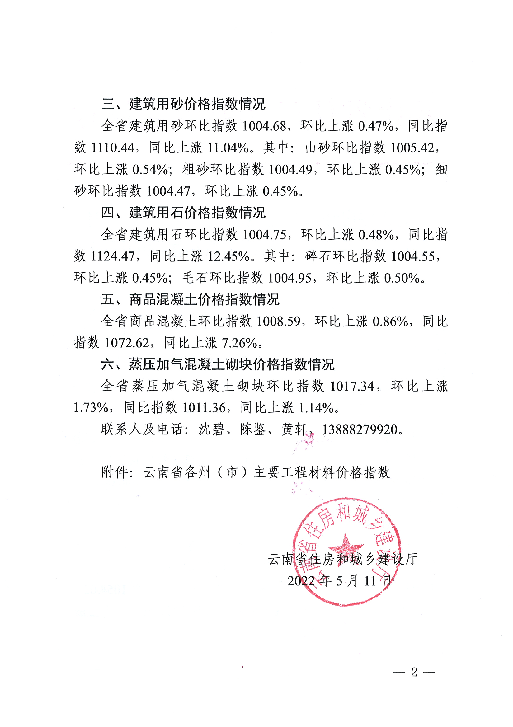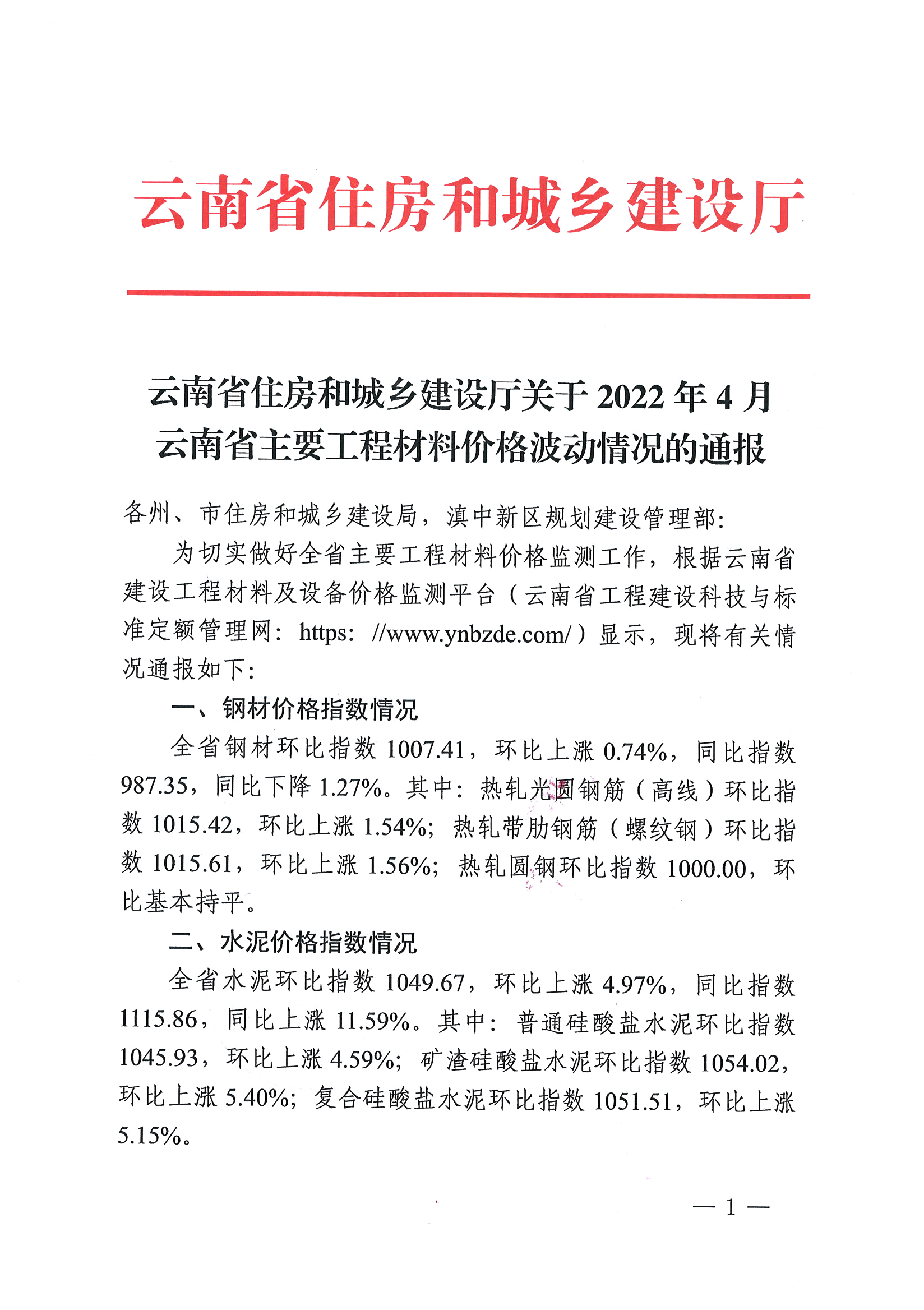 云南省住房和城鄉(xiāng)建設廳關于2022年4月云南省主要工程材料價格波動情況的通報
