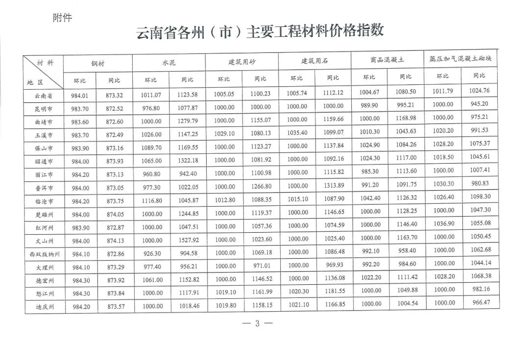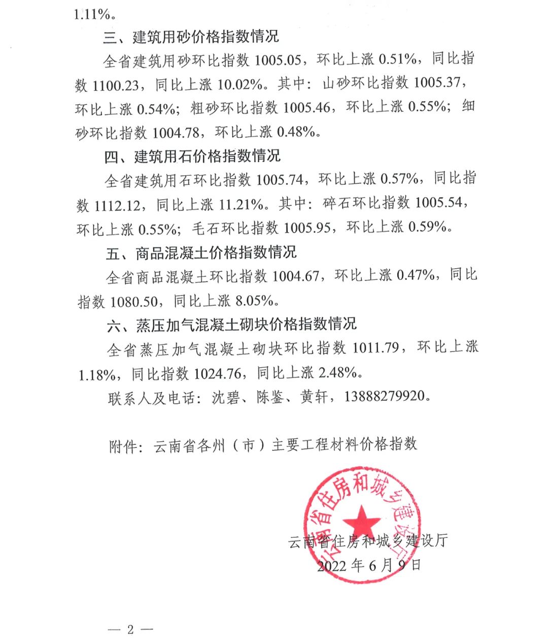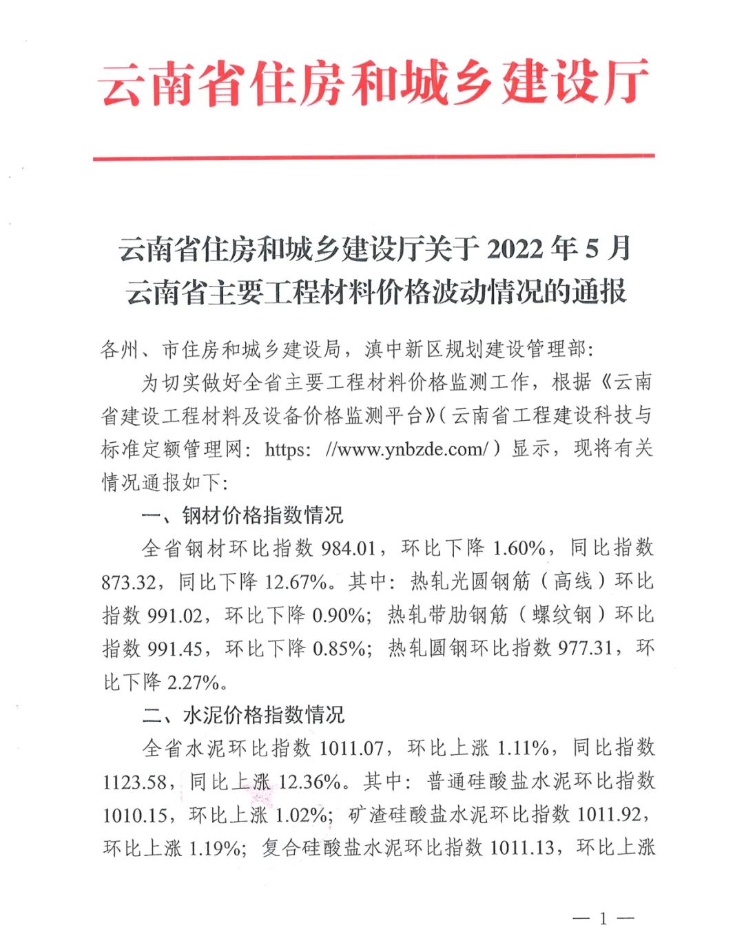 云南省住房和城鄉(xiāng)建設廳關于2022年5月云南省主要工程材料價格波動情況的通報