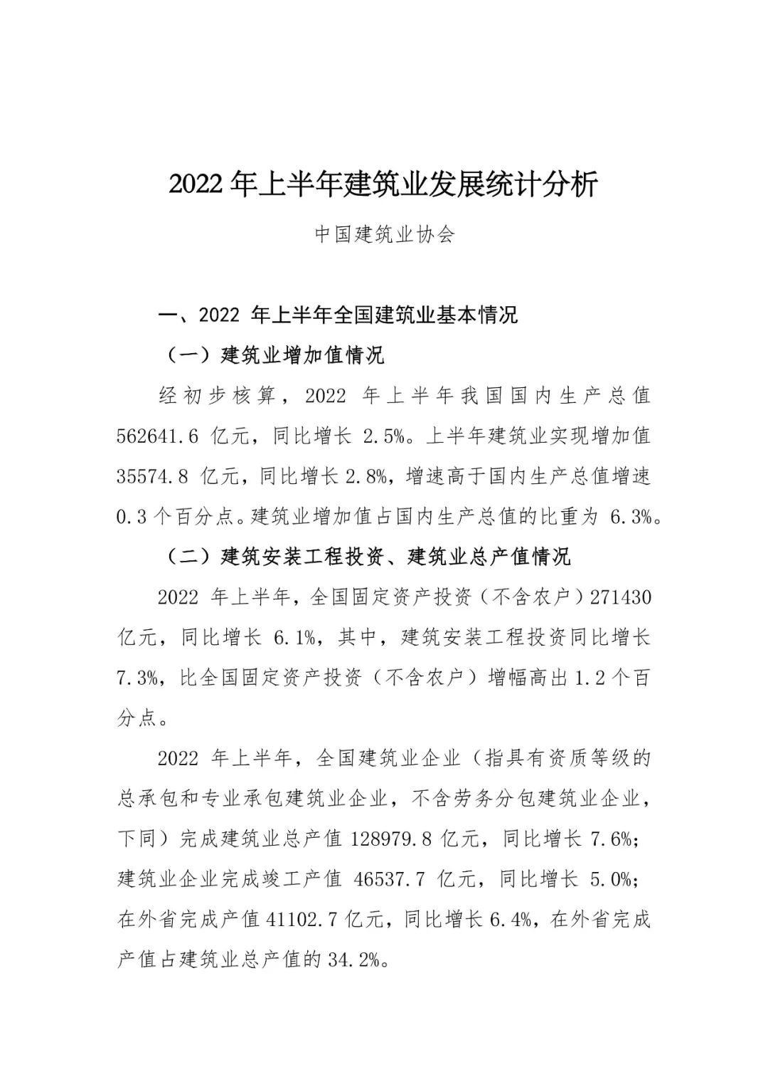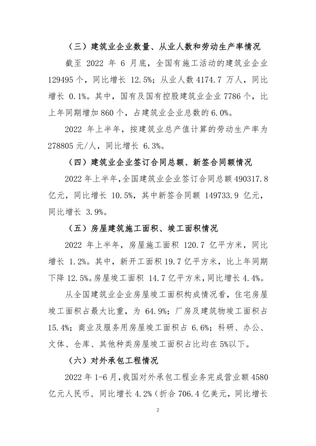 2022年上半年建筑業(yè)發(fā)展統(tǒng)計(jì)分析