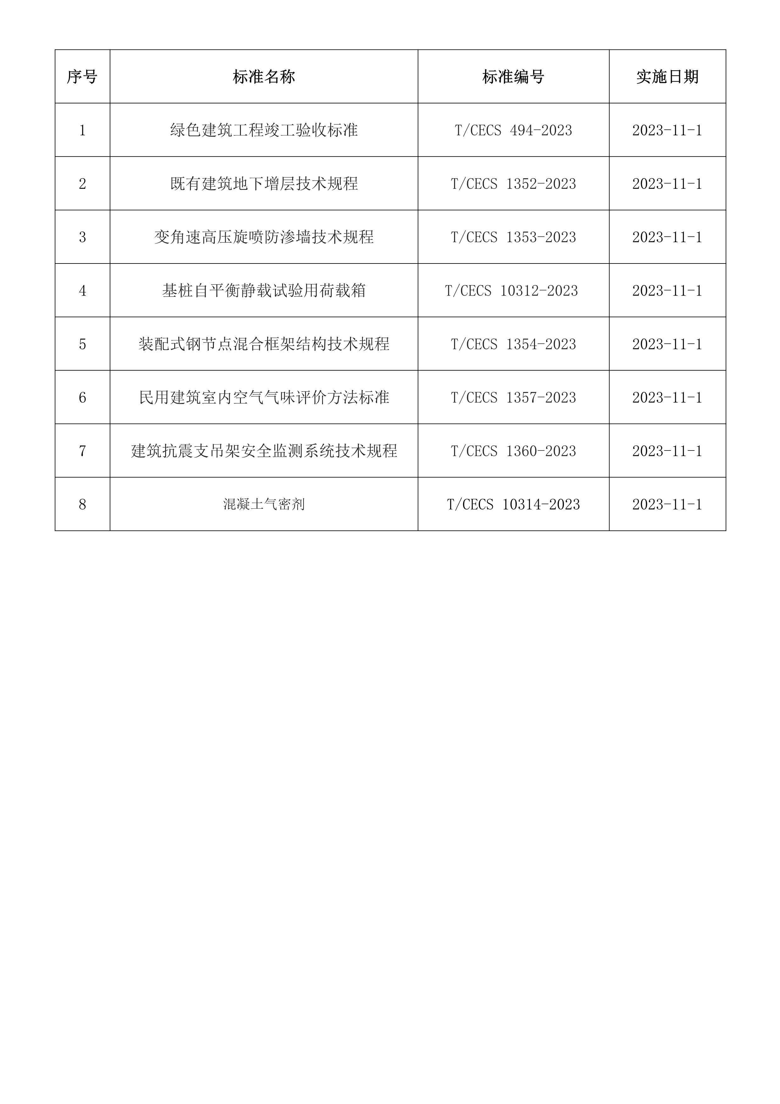 2023年11月開(kāi)始實(shí)施的工程建設(shè)標(biāo)準(zhǔn)